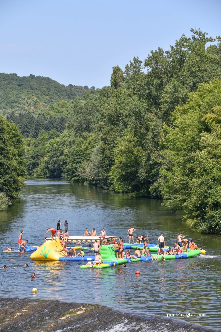 Camping sympa au bord de la rivière, village et base aquatique à 10 minutes à pied par un chemin pédestre, prix plus que raisonnable, super accueil, sanitaires un peu vétustes mais franchement cela reste raisonnable bref très bon rapport qualité prix !!