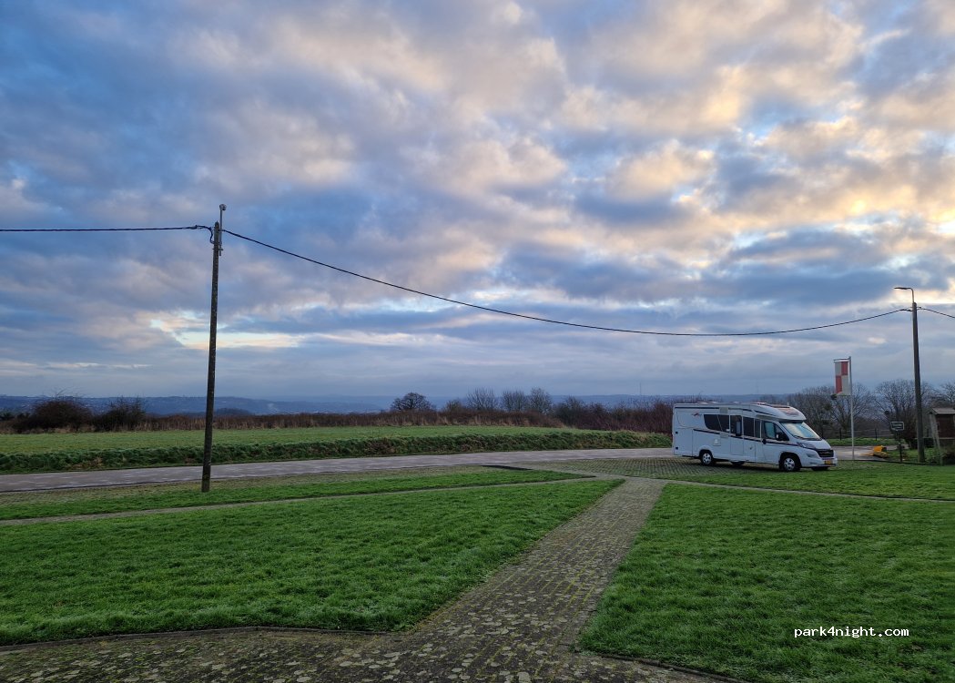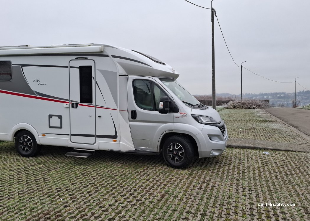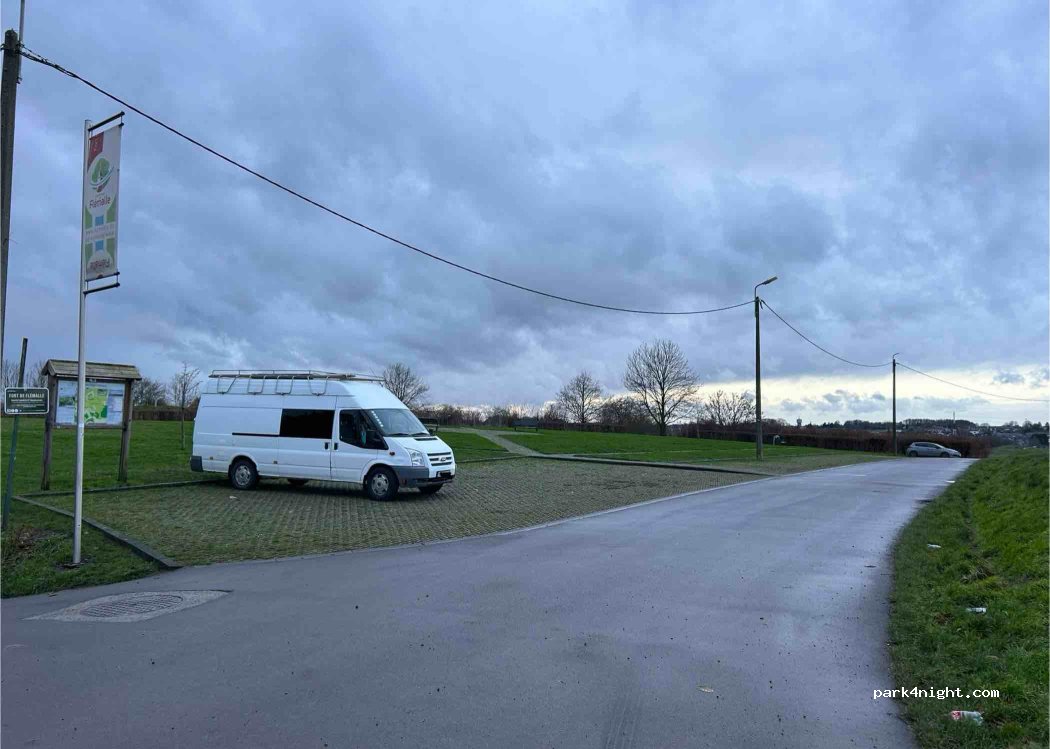 Mooie rustige plek met uitzicht over Luik. We stonden er alleen met af te toe bezoek van een wandelaar of om de hond uit te laten. Er staat een picknickbank met een prullenbak en een paar losse bankjes. Verder geen voorzieningen. Rustige nacht gehad.