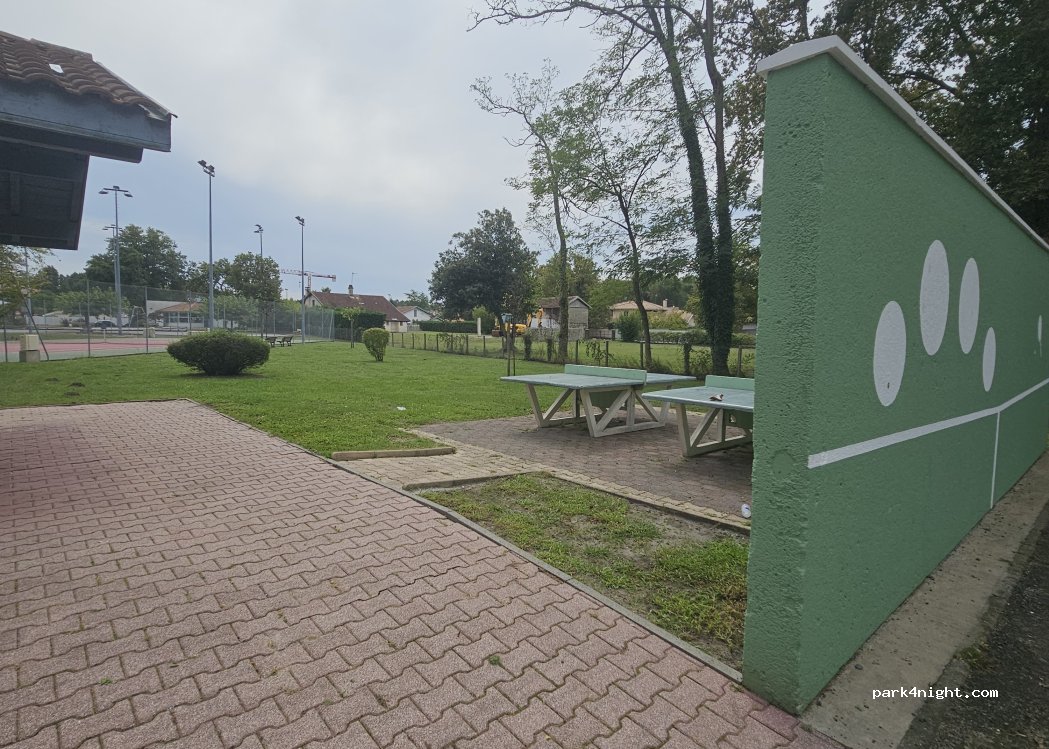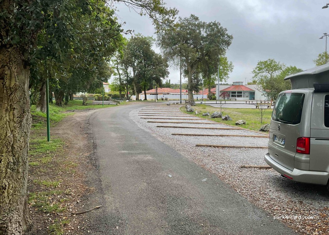 Super parking, idéal pour passer une nuit. Endroit très calme et agréable sous les pins. Le parking est collé à un tennis club, on a eu un agent d’entretien qui est venu tondre vers 8h. Sinon parfait on recommande