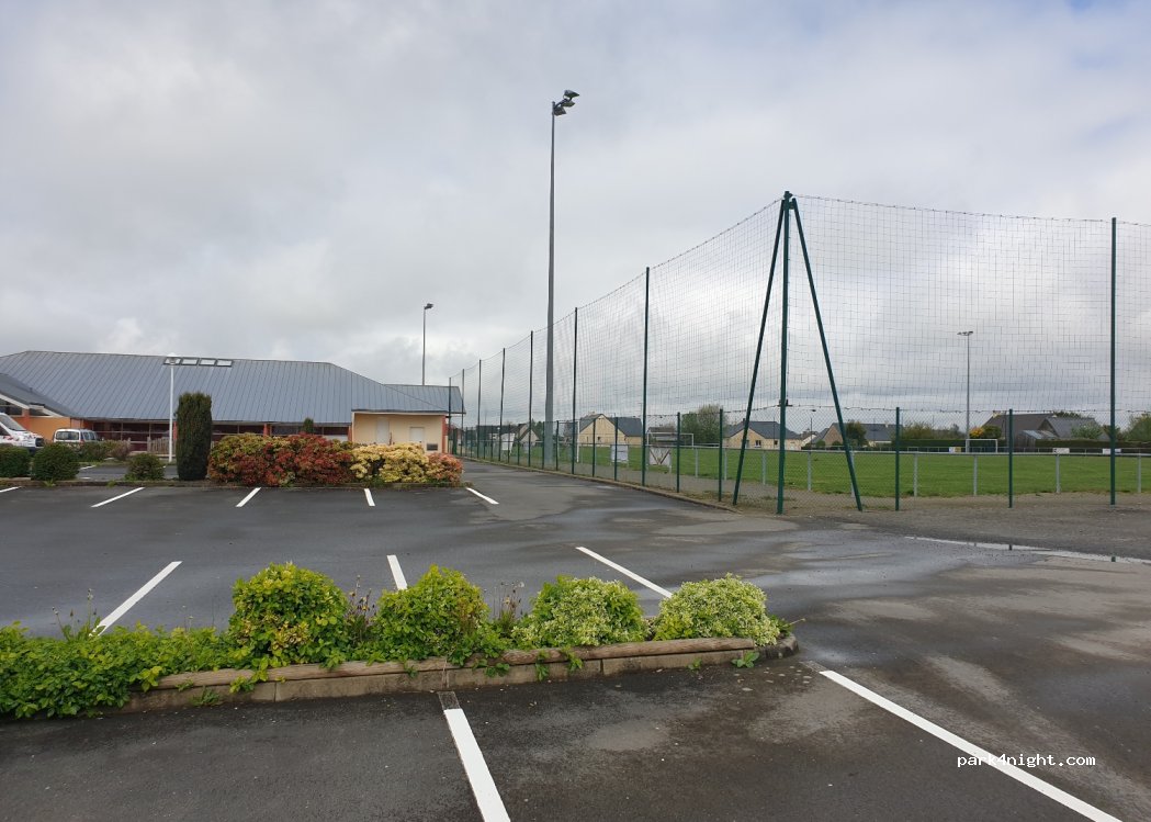 Grand parking proche du stade de foot.