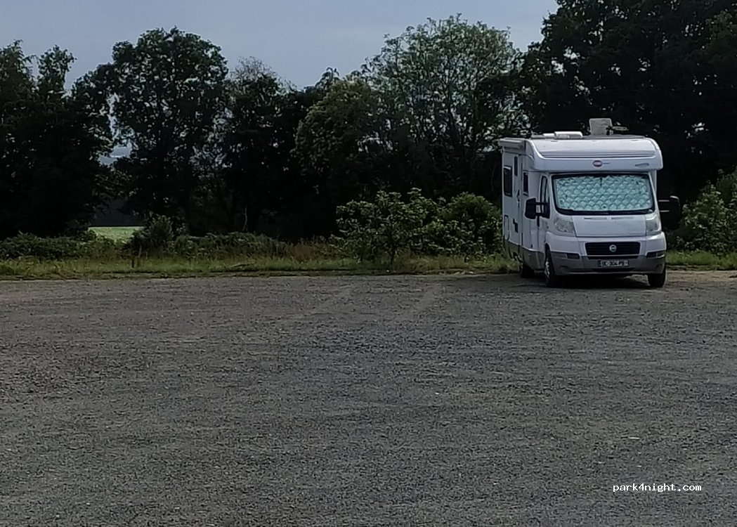 Parking près du cimetière à la sortie du village, pas d'interdiction, juste à côté de jeux sportifs pour enfants, boulangerie, bar épicerie et WC à 200 m dans le village.