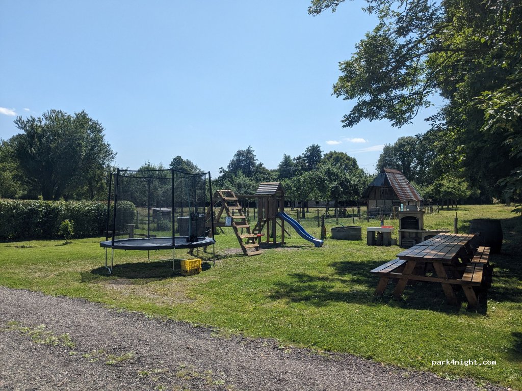 Sehr freundliche und hilfsbereite Besitzer mit einem wunderbaren Anwesen, mit kleinem Spielplatz, Sitzgelegenheiten und einem gemauerten Grill. Es gibt eine Dusche, eine Trockentoilette und Strom (den wir nicht benötigten). Außerdem kann man Apfelsaft, Calvados und andere Kleinigkeit erwerben. Sehr empfehlenswert!
