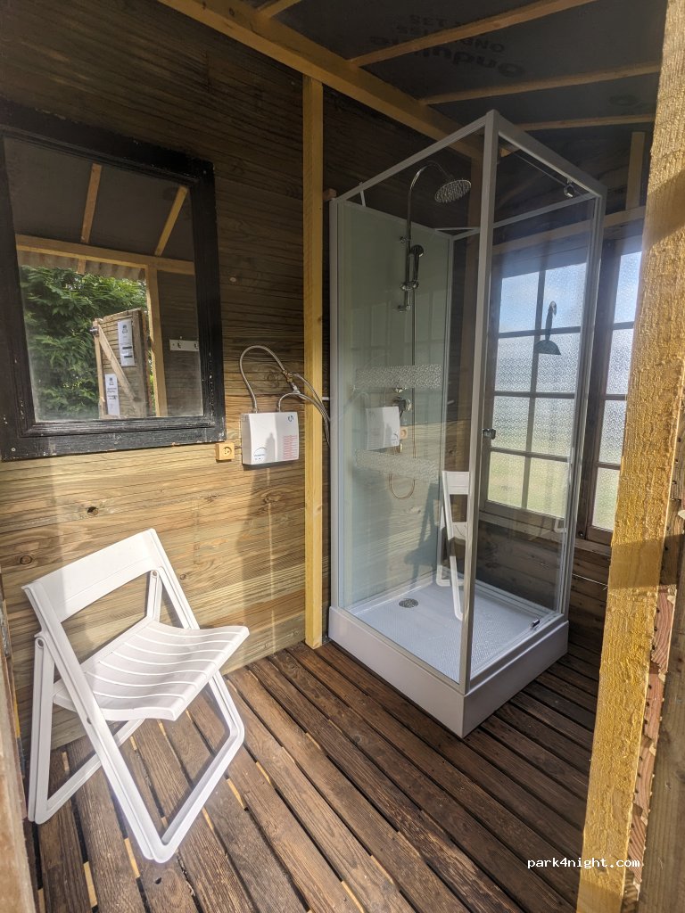 Super lekkere douche alles lekker eenvoudig, droogwc mooie ruime plekken electriciteit alles onbeperkt voor 12 euro geen geld! Lieve eigenaren, en een calvados proeverij indien je dat wilt. Heerlijk rustig