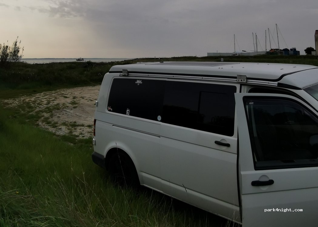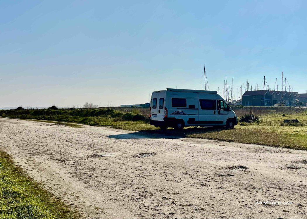 Super spot tranquille pour une nuit très calme, même en pleine tempête. Je vois des commentaires farfelus, car pas de panneaux interdisant les CC, ni de bornes de payement, c’est un chemin et au bout il y a une cale de mise à l’eau avec un beau bitume pour se garer, seul au monde… parfait quoi!