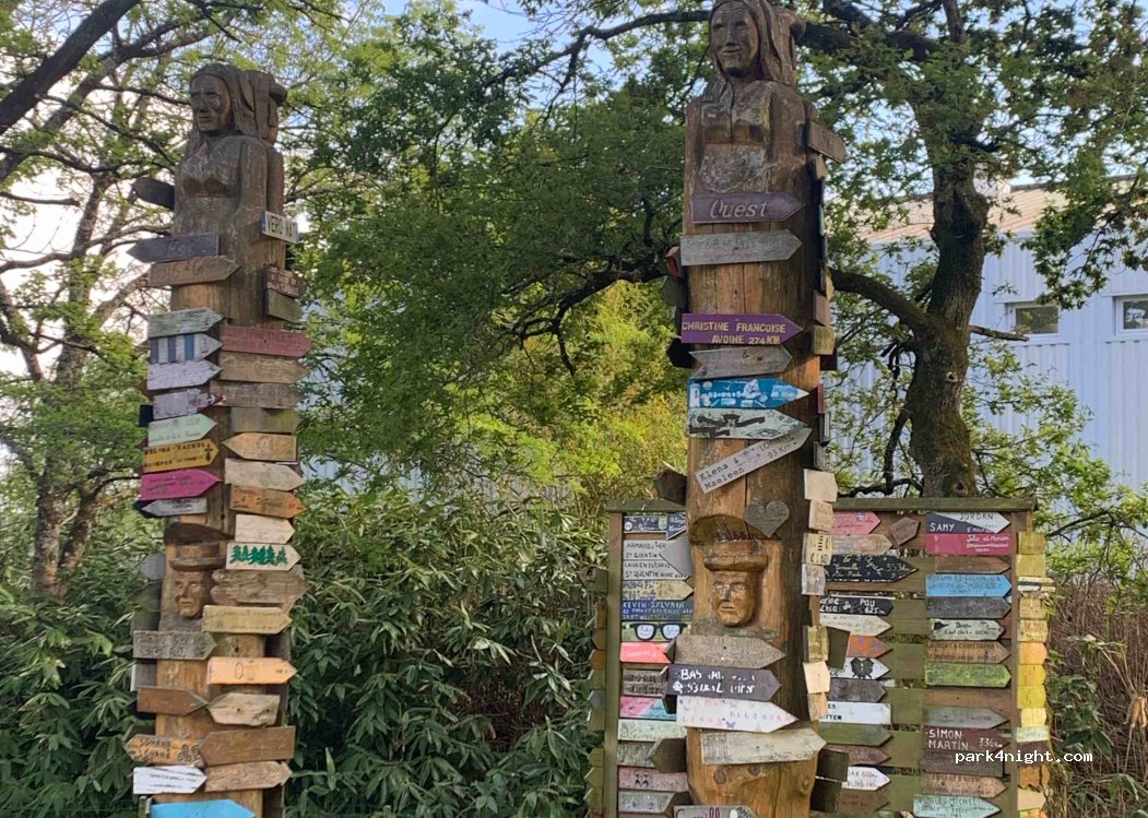 Précision supplémentaire à notre avis: Pleucadeuc est la commune qui organise tous les ans une fête en l’honneur des jumeaux/jumelles. Les totems de la photo illustrent cet événement et dans la commune de belles photos de jumeaux/jumelles réjouissent le regard.