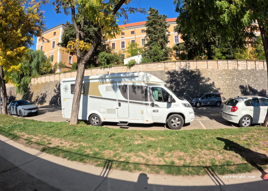 super parking, à 2 pas de la vieille ville. plein de place libre des 2 côtés de la rue. 0,50 cts/h, c'est du jamais vu en Croatie. la ville historique vaut vraiment la visite, et le clou au coucher du soleil, les orgues marines.