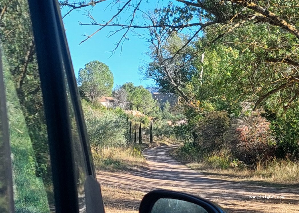 Très calme. La cascade est malheureusement à sec (compréhensible pour cette année). Places horizontales au bout d'un chemin carossable en impasse. Le demi-tour est possible si pas plus de 7m. Avec vue sur la cascade et au loin les ruines du château. Table de pique-nique et poubelle. Laissons l'endroit propre.