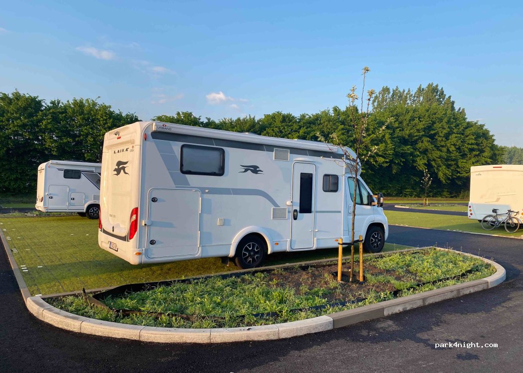 Nouveau parking au complexe sportif de Bilzen. Endroit calme pour passer 1 nuit avant le départ Bilzen Classic pour faire du vélo. A 800m du centre de Bilzen où se trouvent de bons restaurants et débits de boissons !