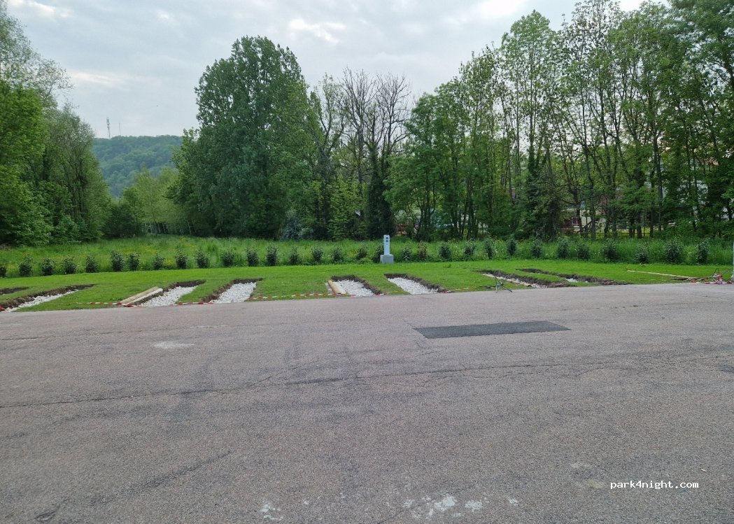 Parking en zone inondable... En ce moment il pleut beaucoup. A éviter... C est le point le plus bas de la ville Possibilité de se rabattre sur parking supermarché Carrefour ou Lidl... Pas de barres... Ou ancien parking ccar rue des Varennes Autre possibilité aire de ccars a 15 kms a Colombey les 2 églises
