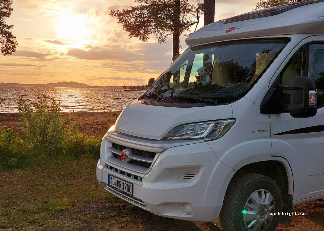 Es ist nachts auf jeden Fall Straßenverkehr, aber für eine Nacht auf dem Weg Richtung Nordkap war es für mich völlig in Ordnung. Der Ausblick (und Sonnenuntergang) sind traumhaft.