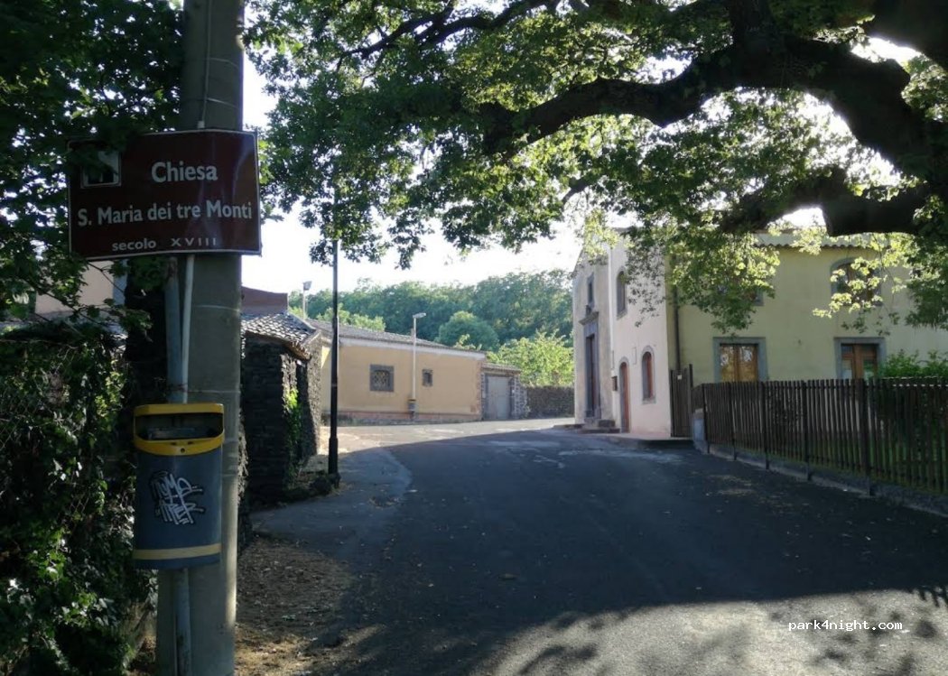 Parcheggio vicino a una chiesa. Durante le giornate di sole è possibile vedere l'Etna. È un buon posto dove stare prima o dopo aver visitato l'Etna.