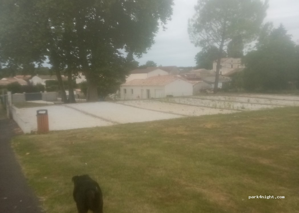 parking sympa sur gravier calme , espace pour nos chiens , terrain de pétanque , service payant , poubelle , 4 g ok