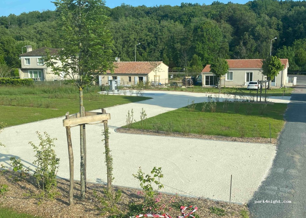 Merci beaucoup à la commune d'avoir créé cette jolie petite aire. Nous avons passé une très bonne nuit malgré la proximité de la route. Nous avons pu nous faire un petit resto dimanche midi "Les Cluzeaux" et visiter les vestiges du château de la Rochebeaucourt-et-Argentine après le dîner étant donné qu'hier le soleil tapait fort. Une balade nocturne bien paisible.