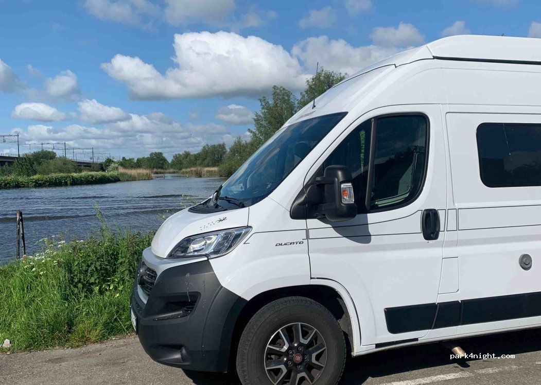 Nah an Gouda, Mc Donald , und 2 Imbisse in einem Umkreis von ca 50m. Schöner Blick auf das Wasser . Achtung laut , Eisenbahnbrücke.