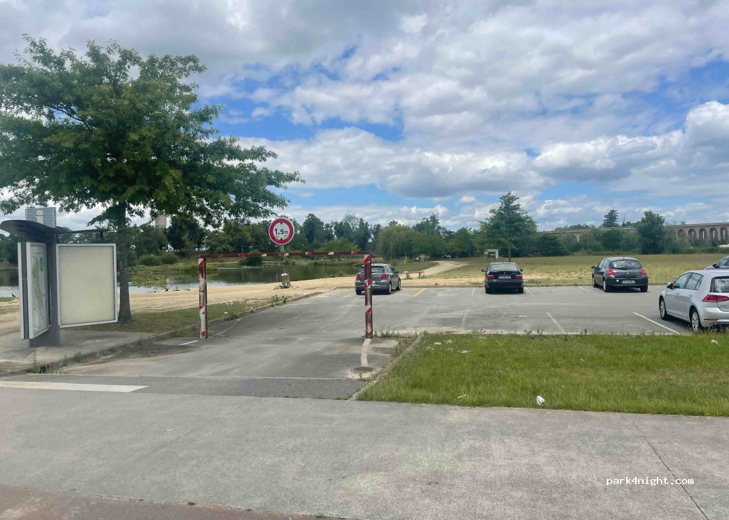 Bien pour une pause repas. Une barrière de hauteur ne permet pas d’accéder au parking. Mais possibilité de se garer au bord de la route sur les emplacements de stationnement.