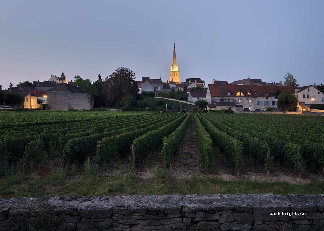 Très bel endroit à privilégier aux petits gabarit(6 m maximum) rue d'accès étroite peu de places... vue imprenable sur le village de MEURSAULT et ses vignes de grand cru. Une nuit c'est bien,deux nuits ,c'est abusé.