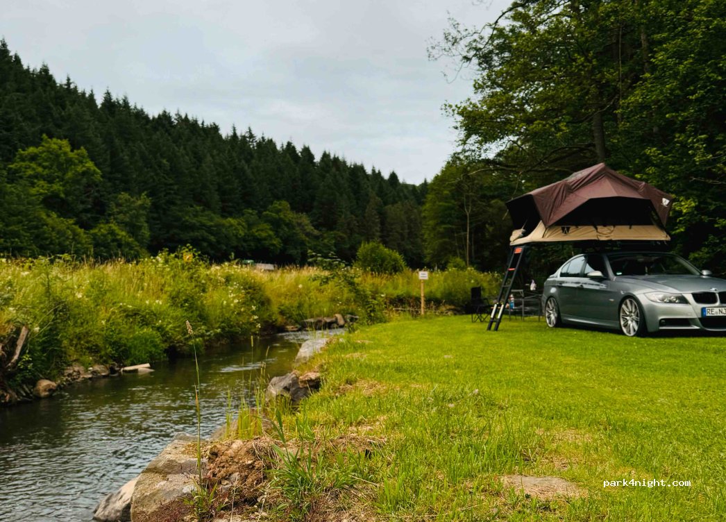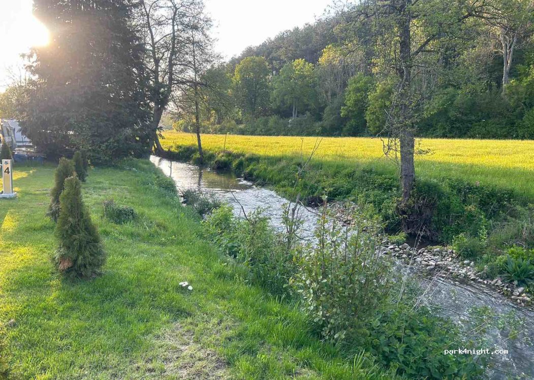 Sehr schöner Campingplatz direkt am Bach, mit Blick auf Wald und Wiese. Tipp: Haben viele Vögel beobachten können. Große Plätze auf der Wiese mit Wasser und Strom. Sanitäranlagen sauber und großzügig. Die Betreiber sind sehr freundlich. Brötchenservice und Minishop vorhanden. Autogeräusche nachts kaum. Haben Aufenthalt verlängert, weil wir es wirklich toll fanden.