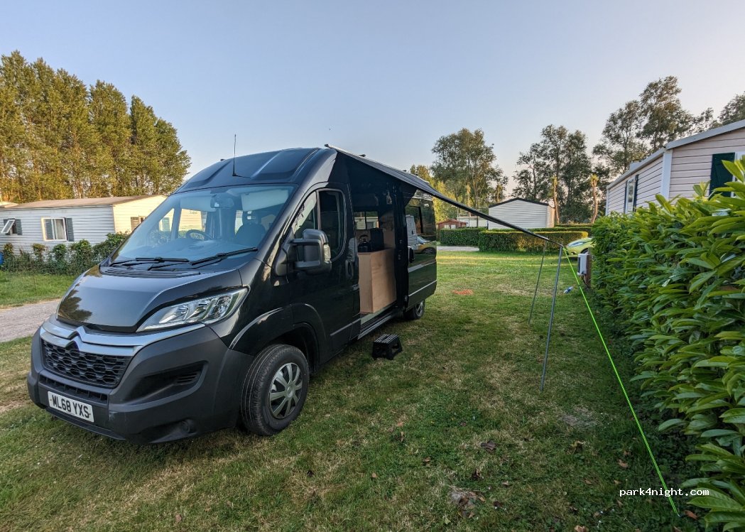 Pleasant place to stay even if it’s predominantly for static motorhomes. Relatively dated but sufficient facilities, hot powerful showers. Owner was nice and kind enough to make sure the gate was open for us leaving at 5am for our ferry. €18 a night with electricity. Site is sign posted on the road but keep your eyes peeled so you don’t miss it!