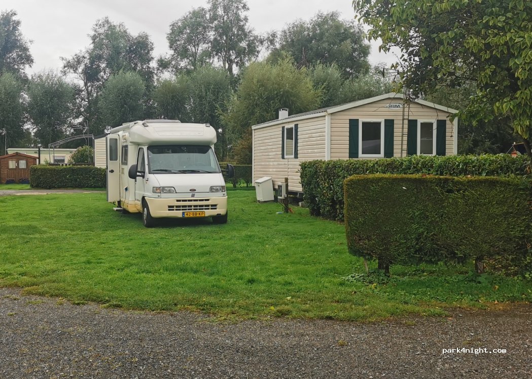 a pleasant quiet campsite away from any main traffic down a short gravel track. I turned up a little late in the evening to find the reception ferme but the owner quickly appeared and let me book in for the night on a level grassy pitch with electric we had a restful night. do not be put off by the park homes