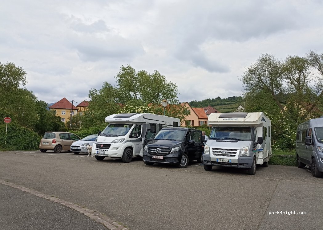 En dehors de la ville à gauche devant la grande porte en venant de Riquewihr. Parking très calme et gratuit. Terrain plat