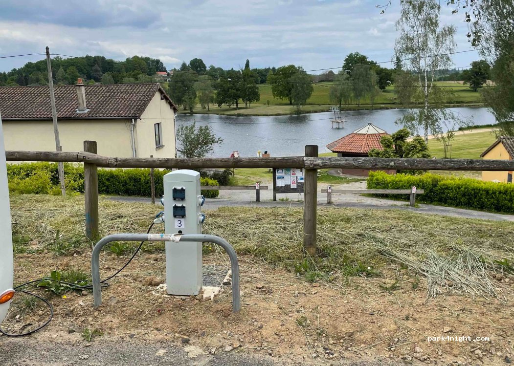 Prix de la nuit 10,50€ en décembre. Accès par card exclusivement. Parking en stabilisé (et non « bitumé »). Réseau de téléphonie sans aucun problème en 4G sur SFR et Orange. Bon emplacement en hiver mais ce doit être la cohue avec le camping et la base de loisir à côté en saison.