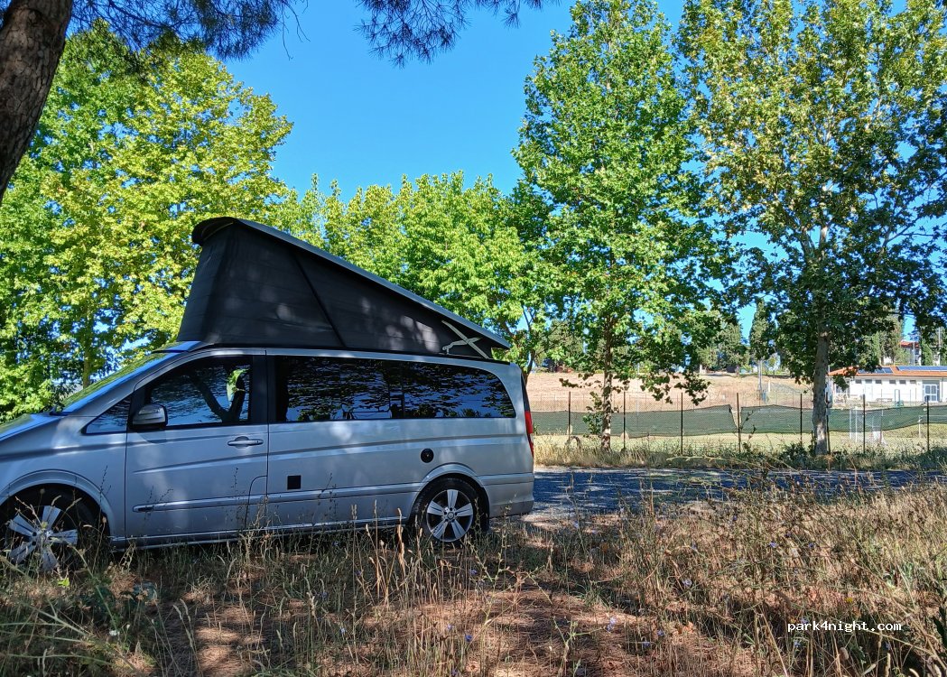 Spend 2 nights here - enough space for few campers, no facilities. We were lucky that there were no major practice or football games, so it was quiet. But the grass was cut in the morning, for a few hours. Went for a ride with a bike - nice views near the lake, you can also visit Santa Luce with nice restaurants with good food and a the view