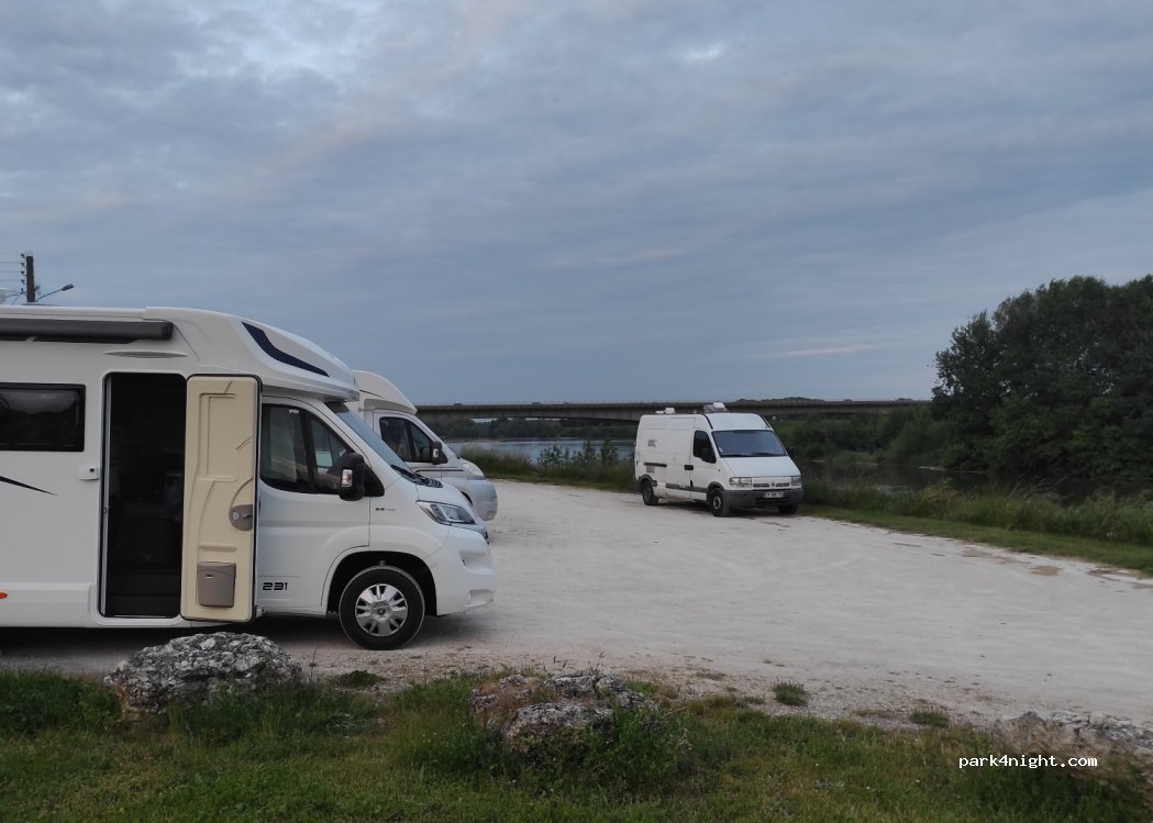 2 km from the center of Blois, on the banks of the Loire, small gravel space for 3 or 4 vehicles with no height limit. PROHIBITED from 1 June to 30 September. More or less level, we spent a very quiet night together with two other CCs. about 100 m before there is another similar space. no services. trash can and picnic table.
