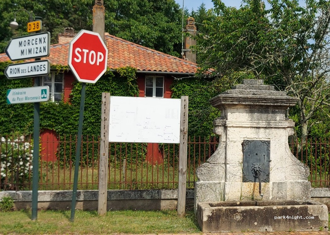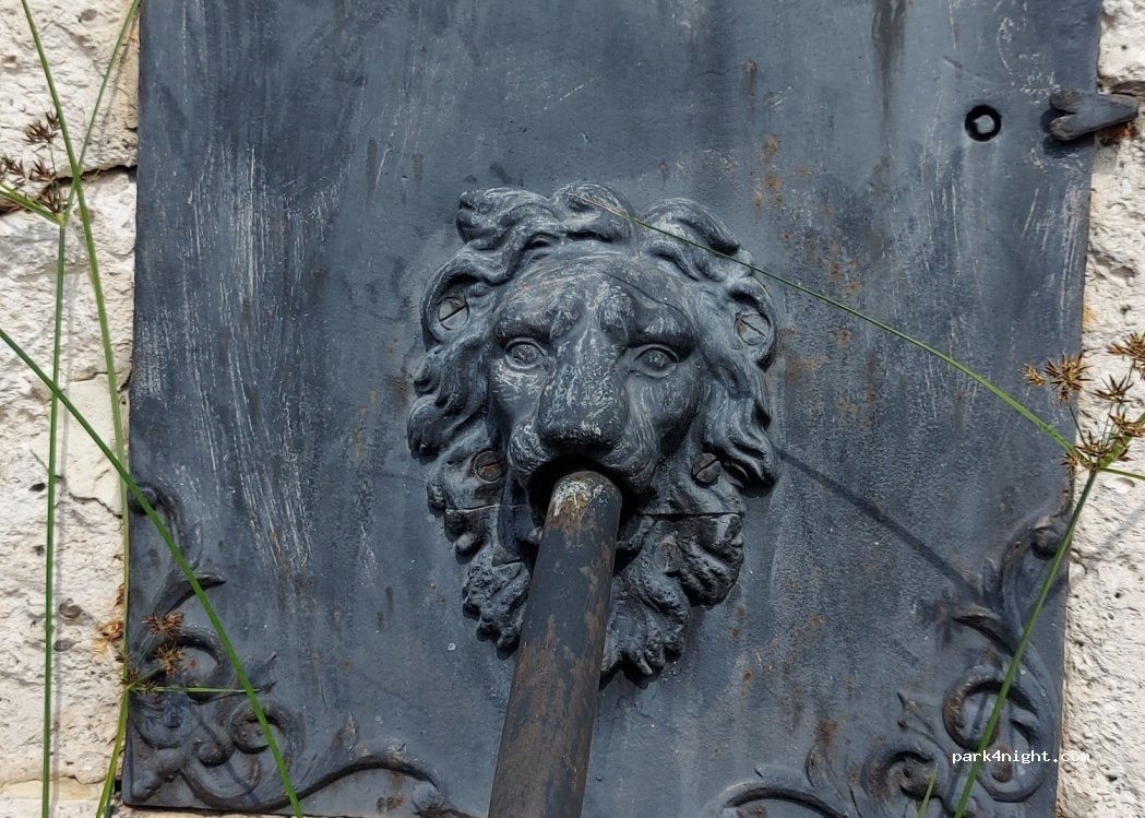 Point d'eau devant l'église à gauche à la fontaine à tête de lion. Bouton pression avec une bonne pression.