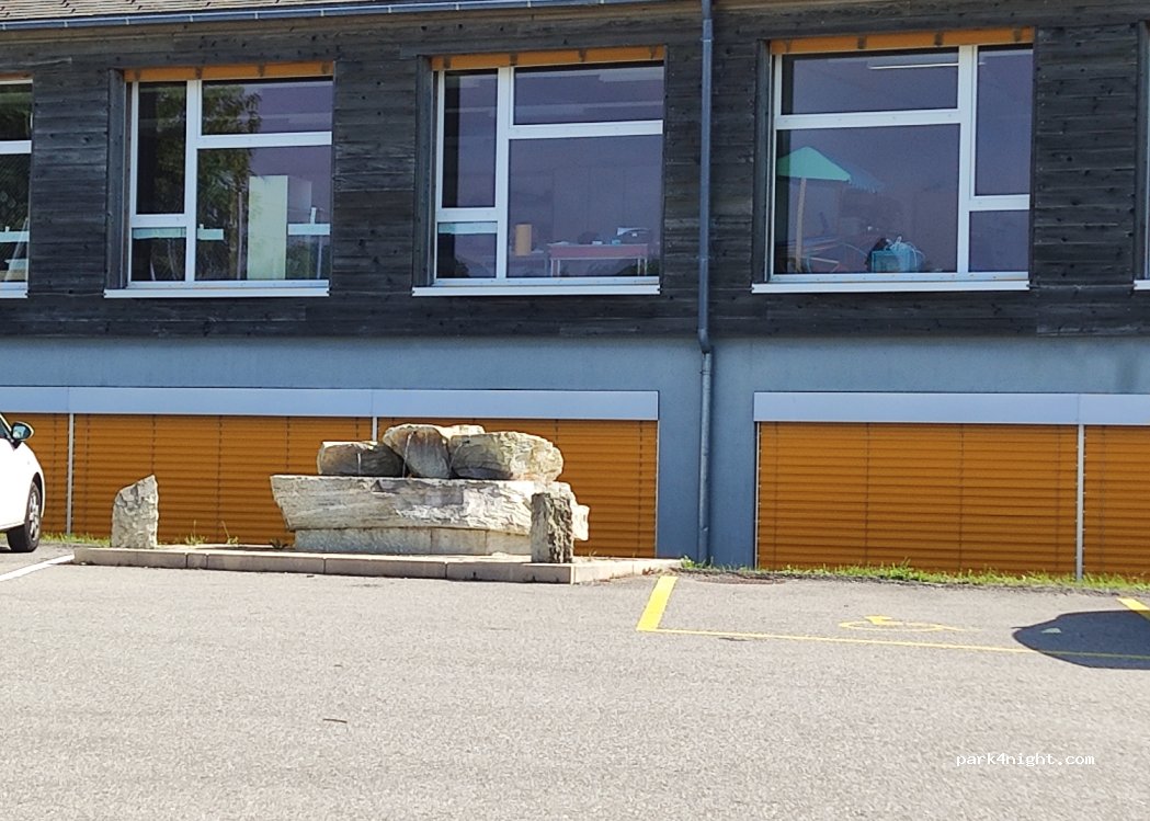 Public parking in the village of Porsel (FR). A little sloping. Park near the fountain. For drinking water, contact the Auberge de La Fleur de Lys next door. Grocery bakery nearby with excellent bread and basic necessities. Not far from the Château d'Oron and the peat bogs of Crêt near Semsales.