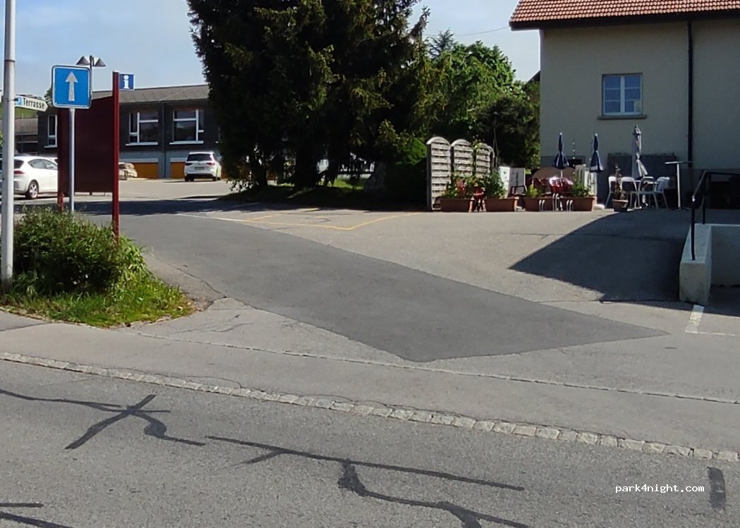 Öffentlicher Parkplatz im Dorf Porsel (FR). Etwas schräg. Parken Sie in der Nähe des Brunnens. Für Trinkwasser wenden Sie sich bitte an die Auberge de La Fleur de Lys nebenan. Lebensmittelbäckerei in der Nähe mit ausgezeichnetem Brot und Grundnahrungsmitteln. Nicht weit vom Château d'Oron und den Torfmooren von Crêt bei Semsales entfernt.