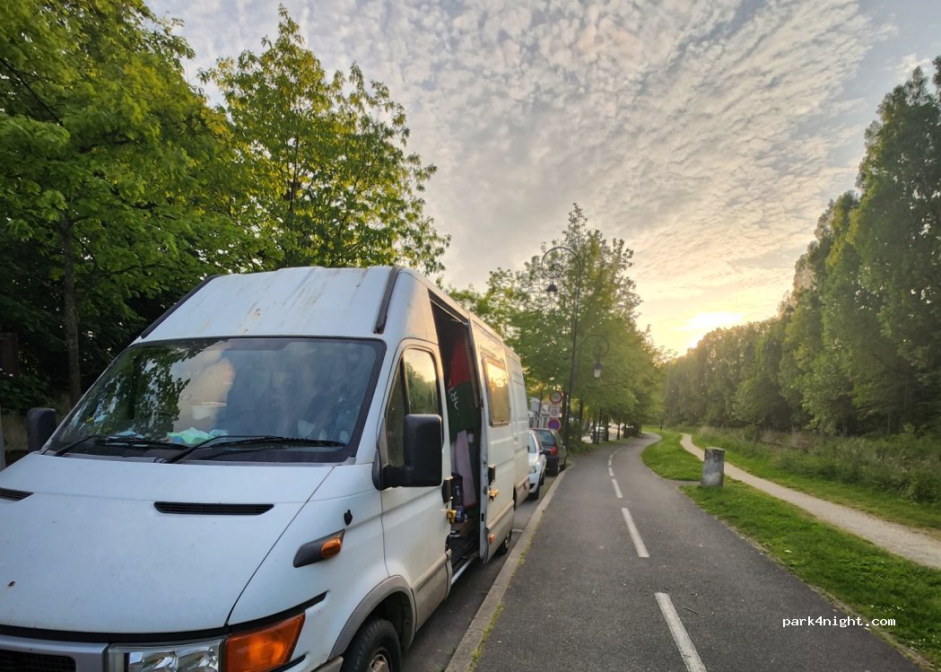 Parking au bord de la route, places assez grandes pour accueillir mon camping-car Iveco Daily de 6,5 m de long. Bon signal 4g/5g, juste à côté d'un pub/restaurant irlandais. garé à côté du canal.