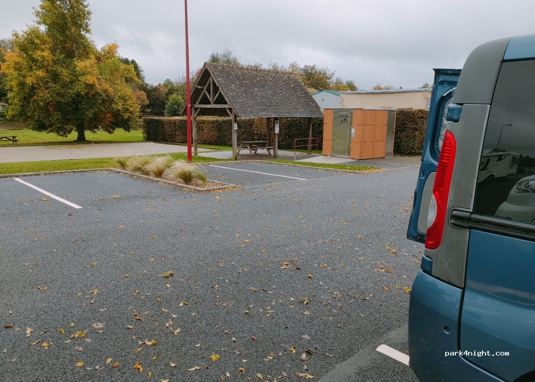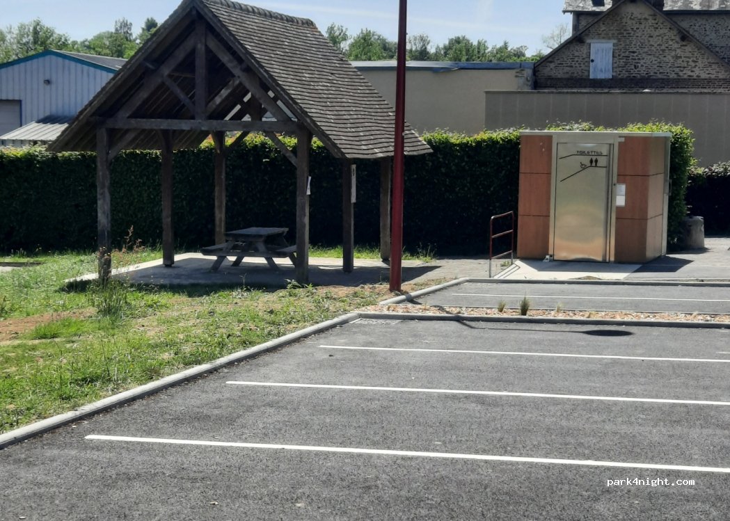 très beau parking avec toilette publique et des jeux pour enfants et terrains de sport , petit étang ; tres bonne nuit.