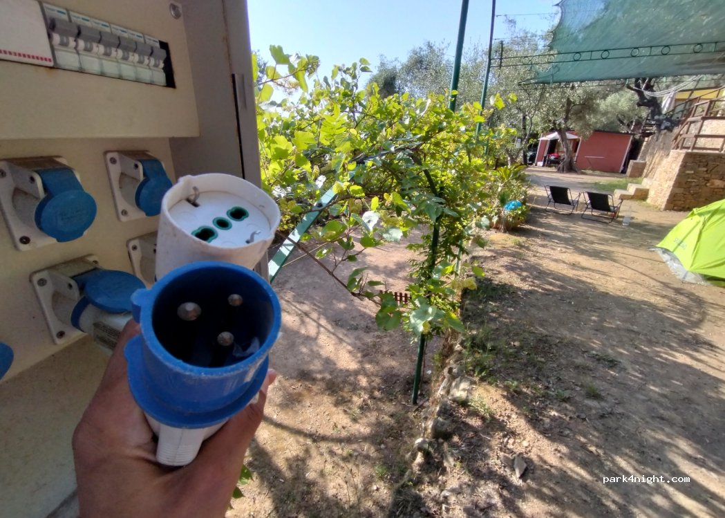 Campeggio, doccia gratuita e prese elettriche per ricaricare telefono ecc