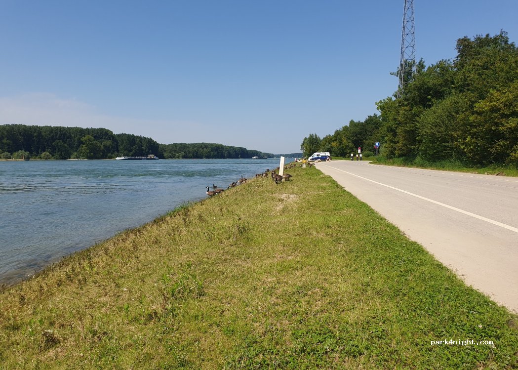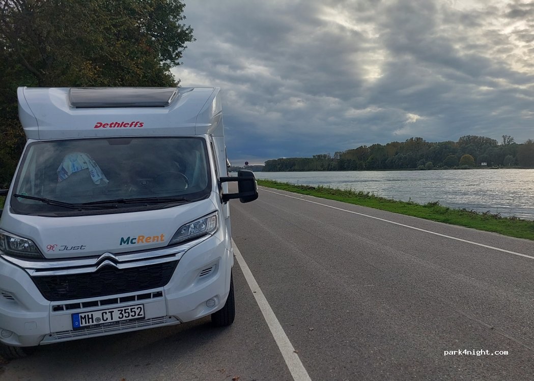 Bel endroit où passer une journée et nuit attention ne pas s’engager sur le côté gauche le long du Rhin, la police circule et zone protégée, restez le long de la route ou continuer après le restaurant spot pour la nuit sans souci, vue magnifique, passage des péniches, faune, canards, oies sauvages, dépaysement garanti.