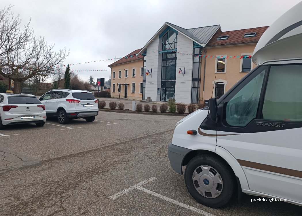 Parking de la mairie. Pas très grand mais il y a quand des places de libres. Jeux pour enfants juste à côté.