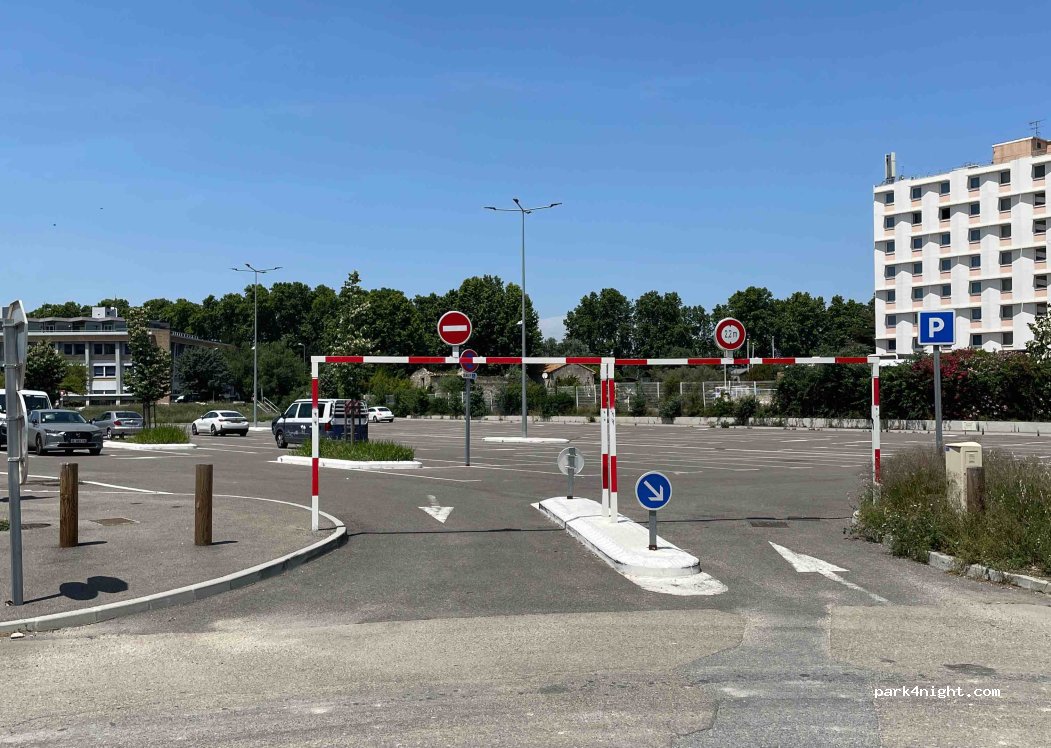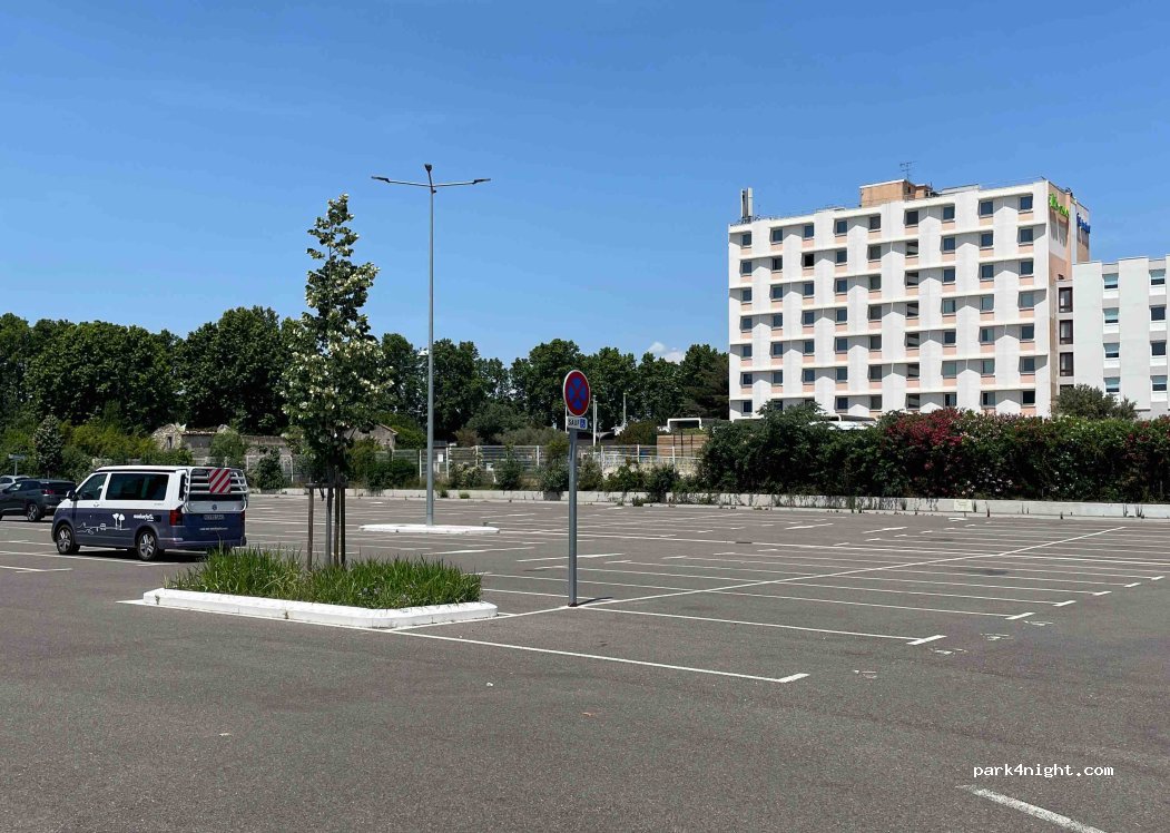 Très grand parking (200 places) un peu en dehors du centre-ville (15-20 min à pied). Nous sommes venus un samedi matin pour le marché d'Arles et avons été surpris de trouver à peu près tout le parking pour nous seuls. Compte tenu des autres commentaires que nous avons vus sur les parkings autour d'Arles, celui-ci se sentait relativement en sécurité car il semble y avoir des caméras de sécurité couvrant le parking.