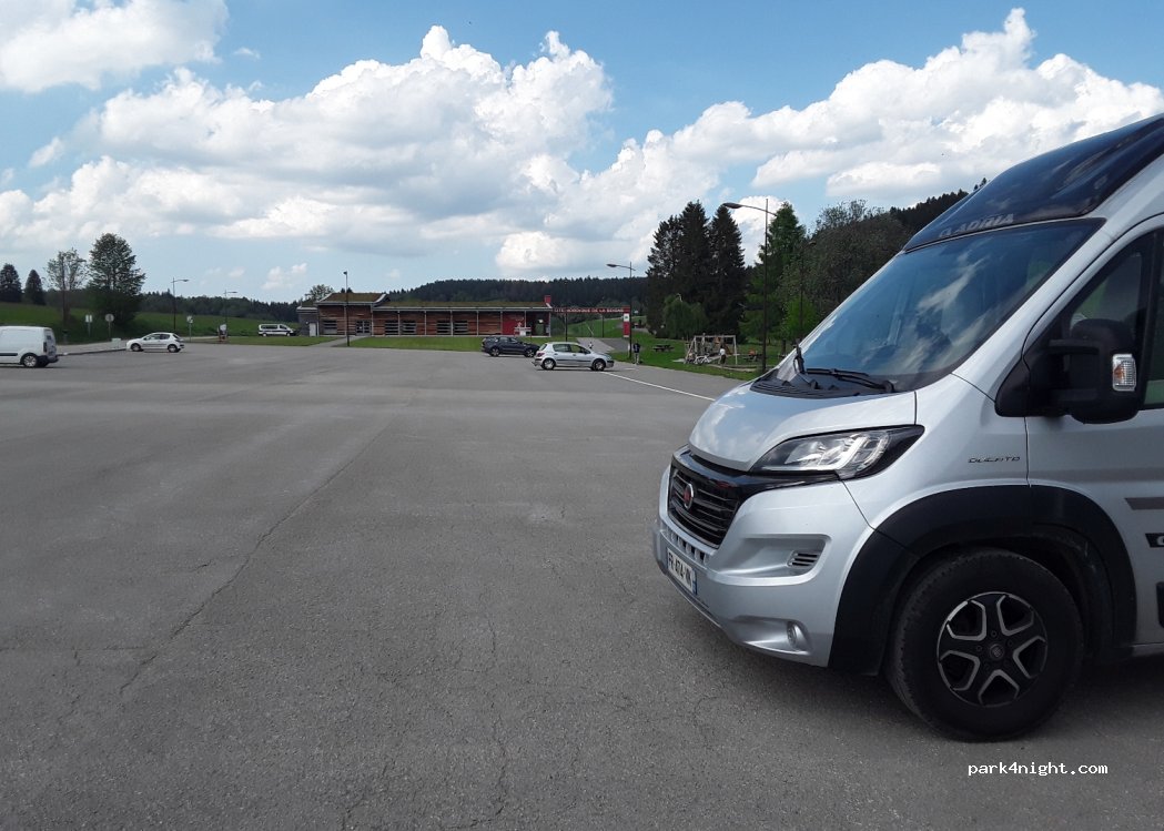 Grand parking très calme site nordique de La Seigne . boulangerie Bio top avec petite restauration. Espace jeux pour enfants. Nuitée interdite.