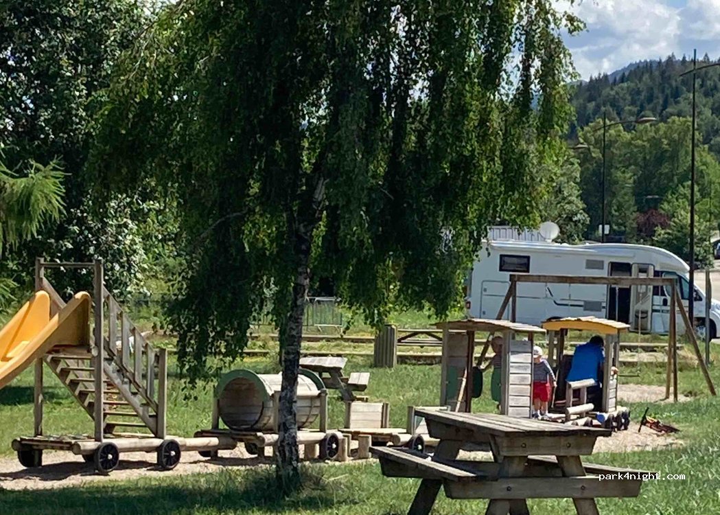 Large car park very quiet Nordic site of La Seigne. Top organic bakery with snacks. Play area for children. Overnight stay prohibited.