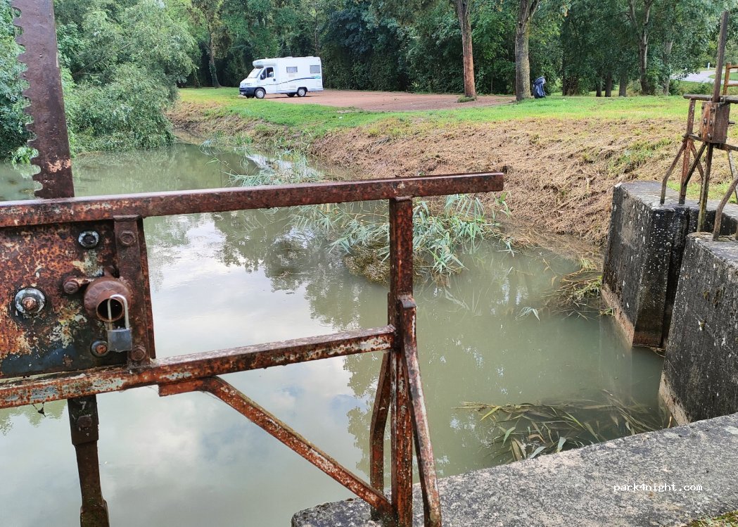 très bel endroit au bord de l'eau . Mais si vous allez au bout près de l'écluse, ce que je conseille, attention de ne pas se garer côté droit où il y a la descente à bateau. Vous risquez d'être réveillé et vous faire engueuler au petit matin par les pêcheurs.
