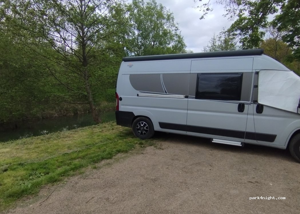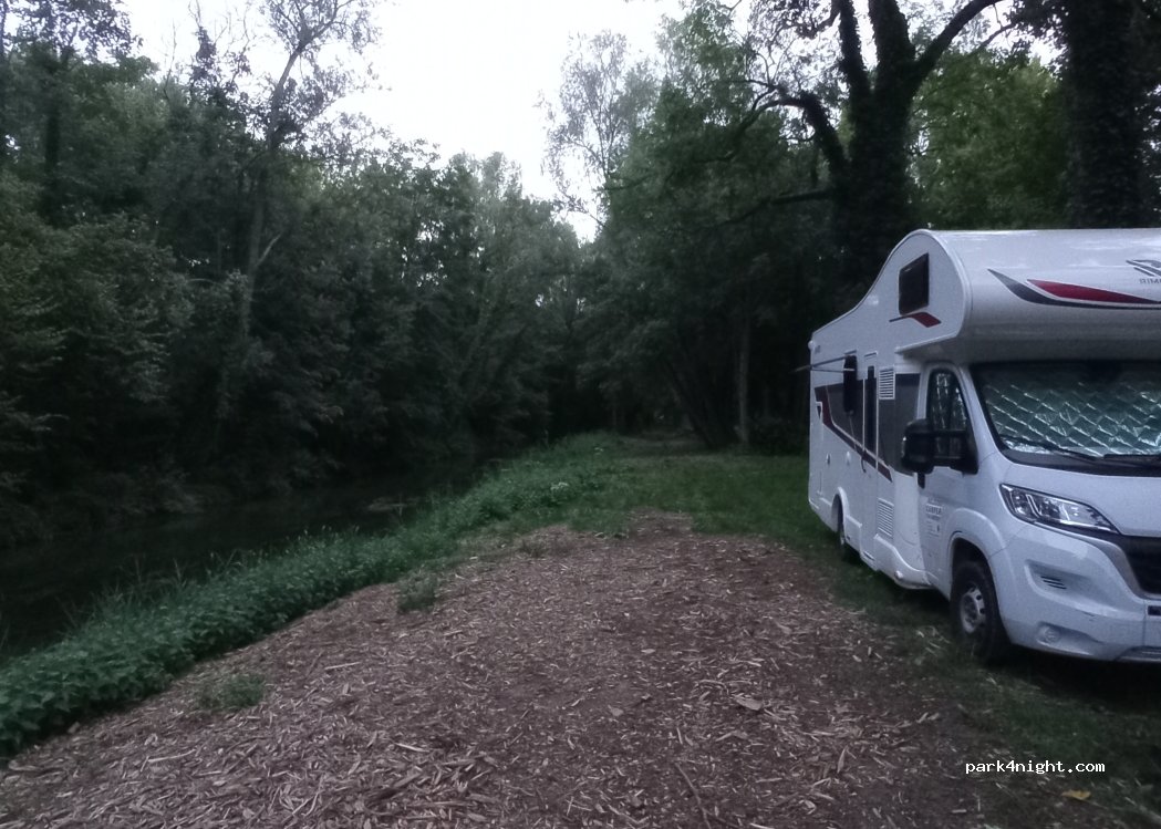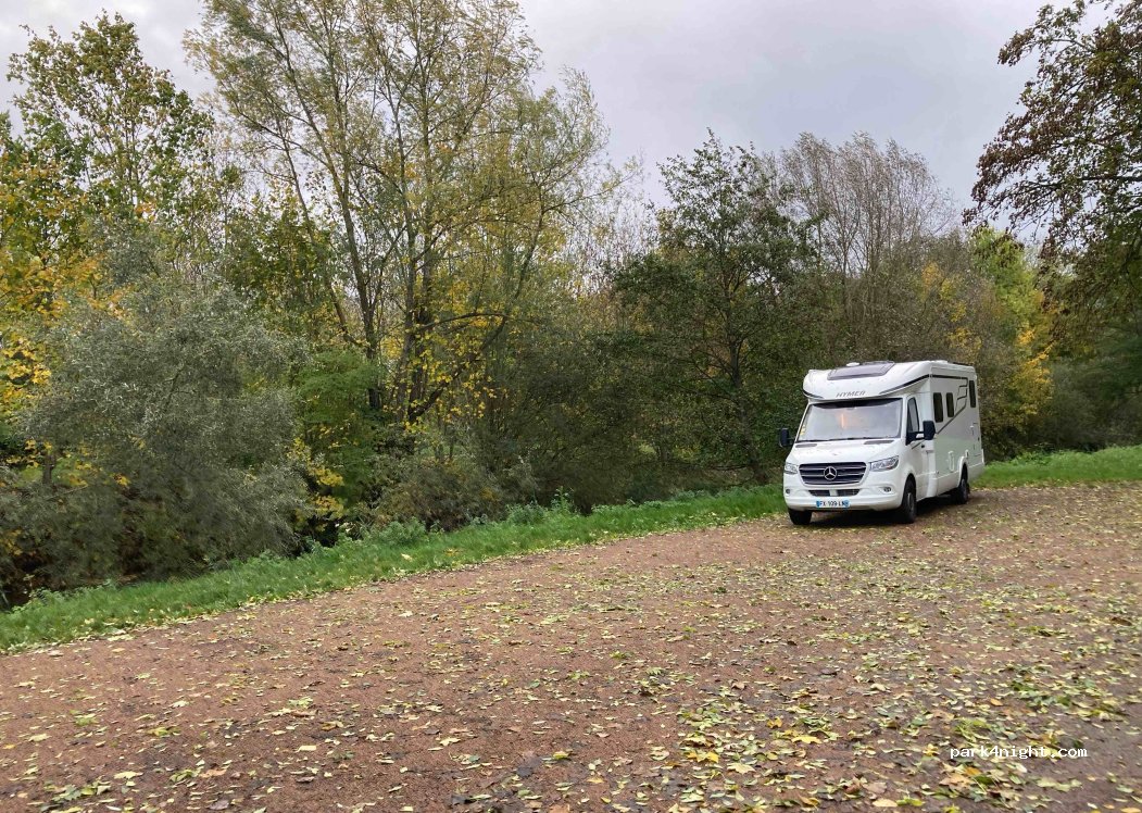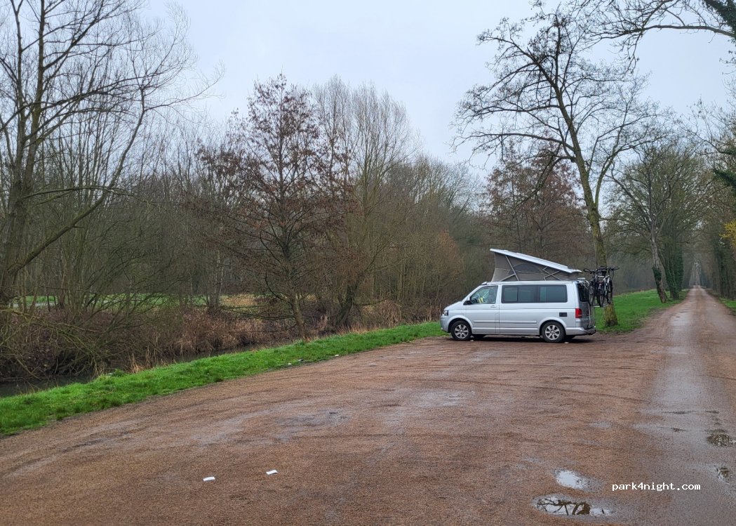 Un parking plat en stabilisé proche d'une route très peu roulée la nuit. Une vue très jolie sur l'ancien canal de la Haute Seine. A 10 minutes à pied de son ancien pont classé historique. La voie verte est le long de l'eau.