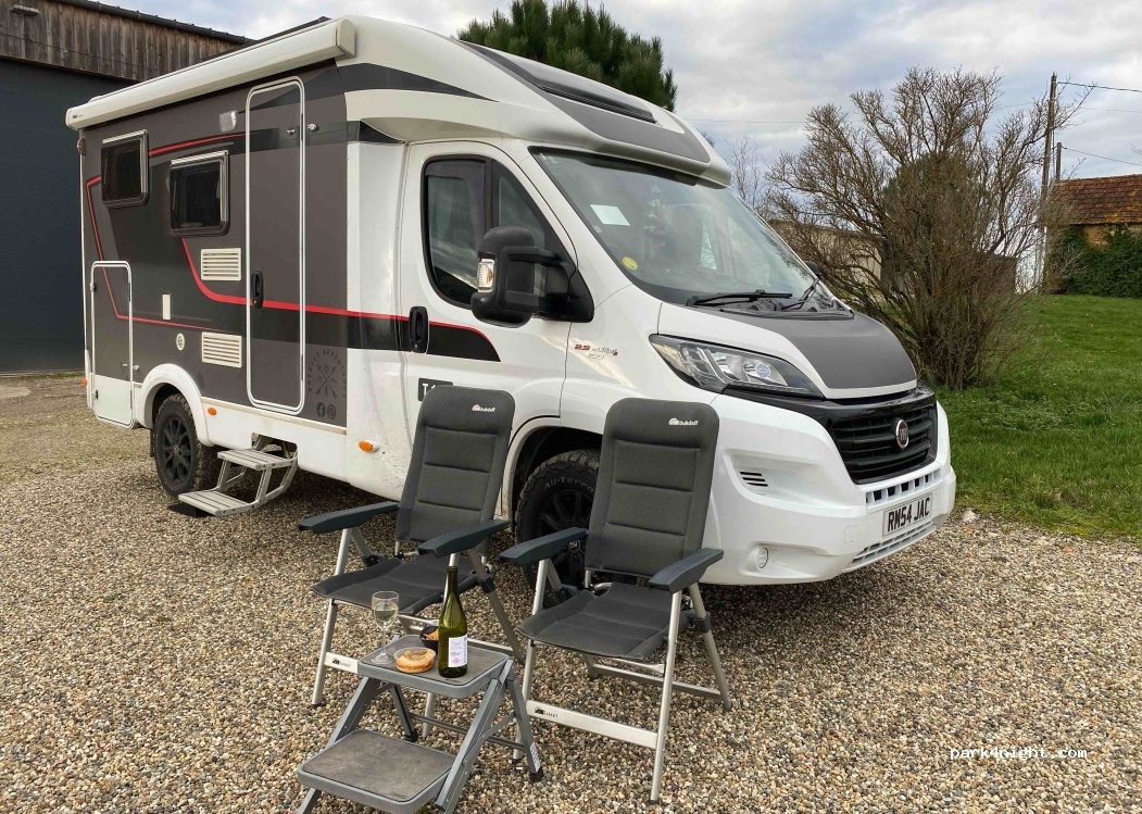 6m motorhome. Beautiful stop on a family run vineyard - 2 super, purpose built pitches, many other farms don’t have this (no facilities so MUST be self sufficient) Wonderful views of the vines & surroundings. Sebastien gave a very warm welcome, super wine (wine tasting on request & work permitting). A superb place to stop, support by buying some great tasting vino & take in a gorgeous place!