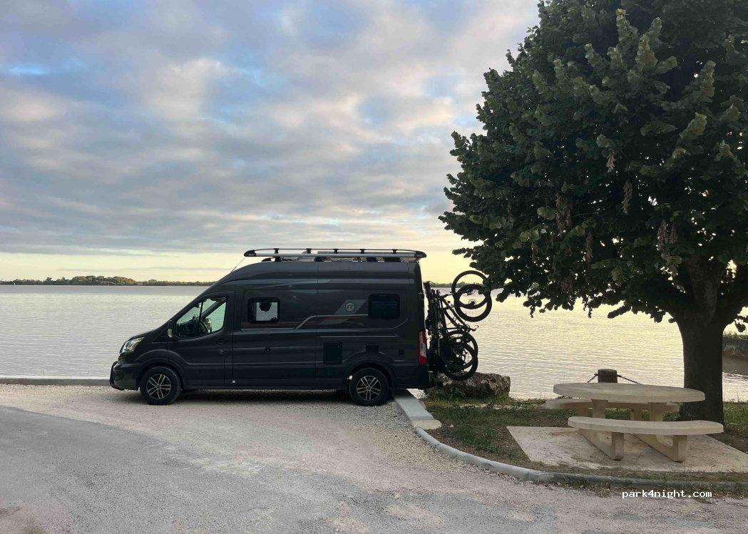 très bel endroit pour une pause déjeuner, table de picnic a disposition. Une très belle vue sur la Dordogne. Par contre très peu de place, je pense pas très adapté au long camping car.