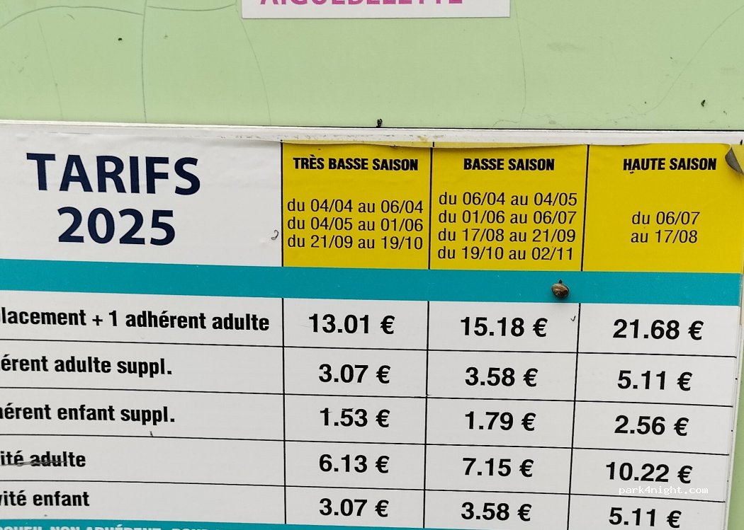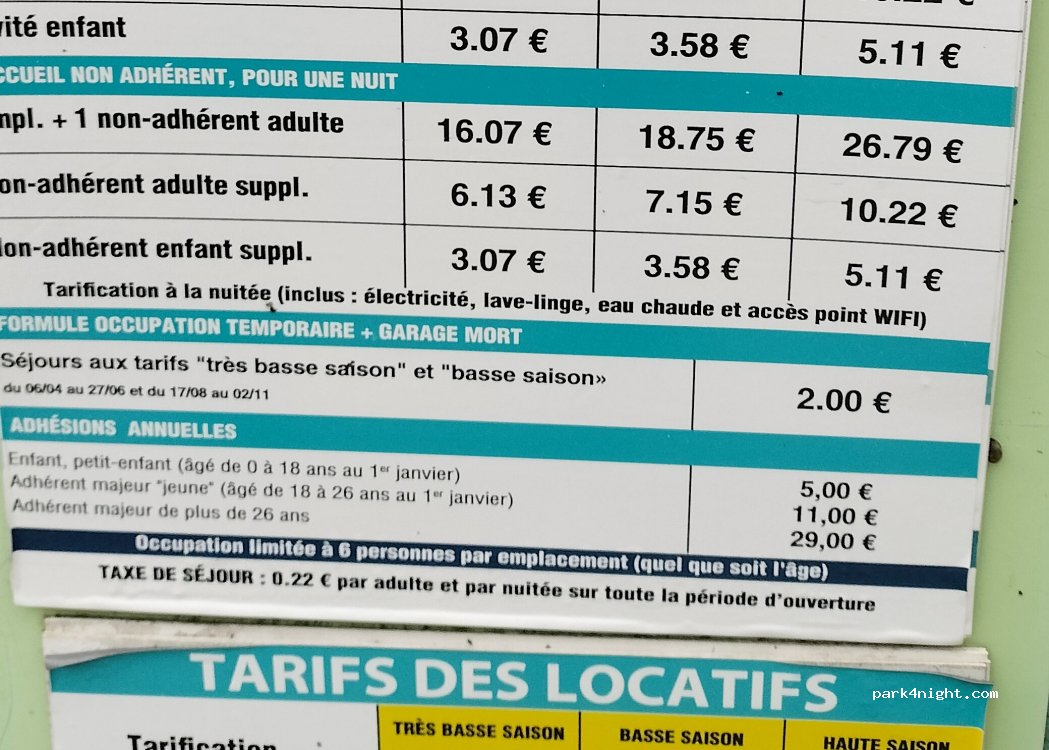 13.01€ - 21.68€ /pitch + 1 adult member