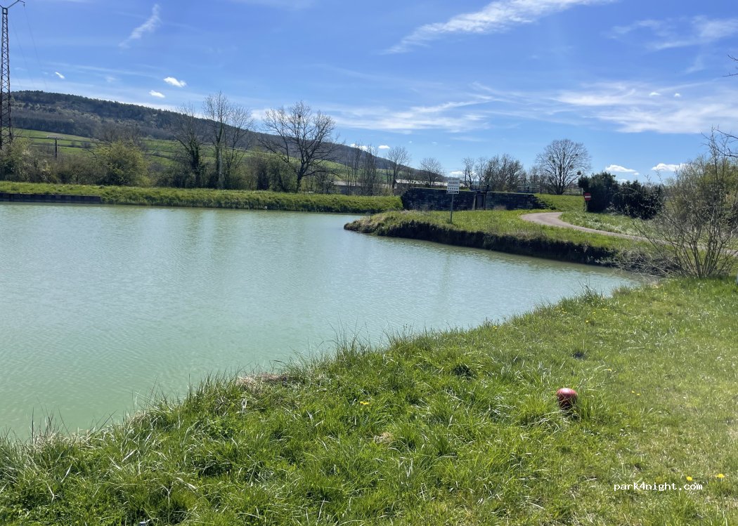 Zeer mooie parkeerplaats/overnachting aan de rand van het Bourgondische kanaal. Gelegen tussen twee sluizen, dit is naast een kleine aanlegsteiger waar enkele rondvaartboten aanmeren. De grond is vlak en bomen zorgen voor schaduw boven picknicktafels. Aan de andere kant van de brug zijn geen voertuigen toegestaan, maar aan de zuidkant lijken er geen beperkingen te gelden. Mooie en rustige plek.