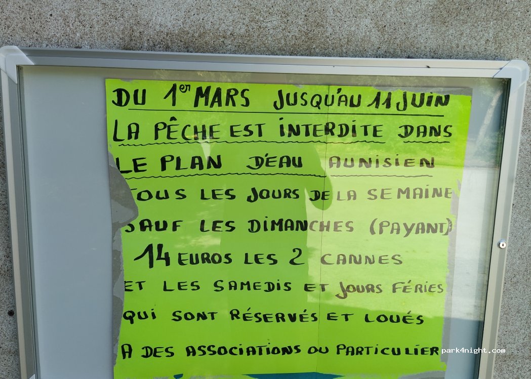 Parking du Plan d'eau du Curé. Ombragé. Zones de peche fermées de mars à juin mais parking toujours accessible. Pas de panneau d'interdiction de nuitée. Idéal pause repas et sieste.