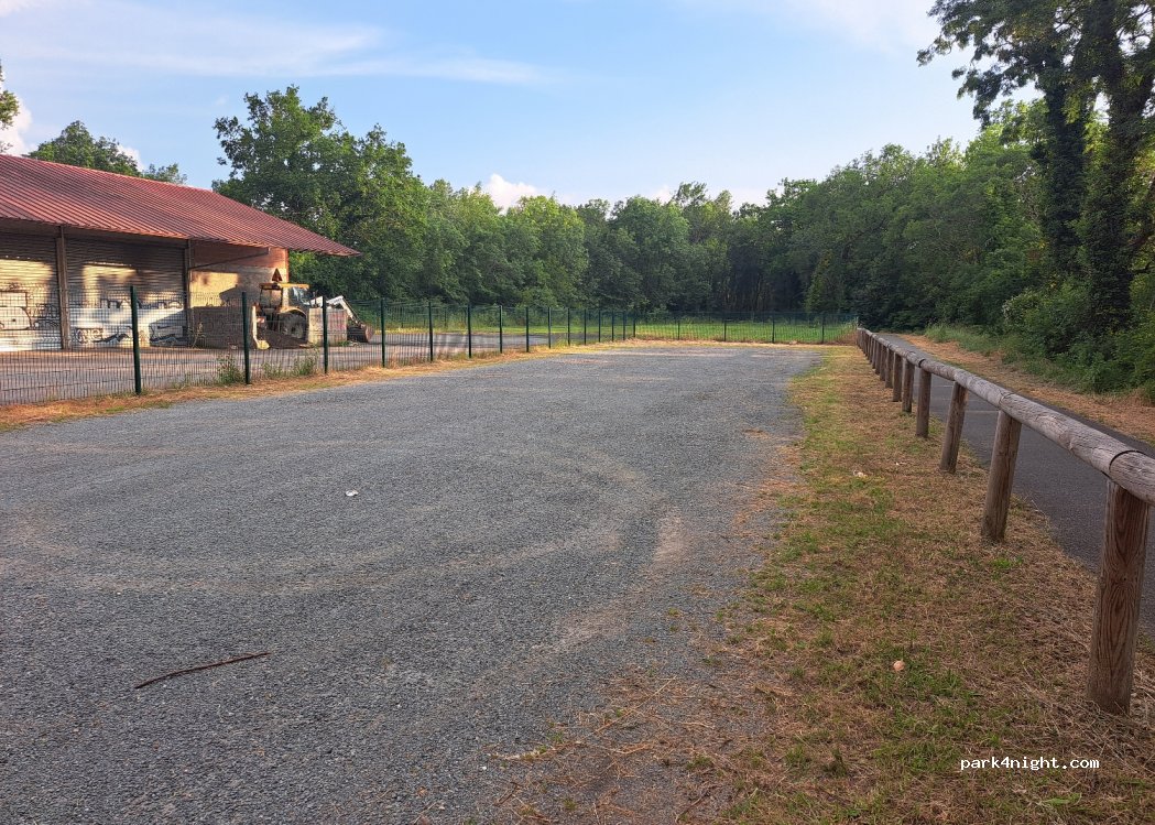 Parking stabilisé, nuit très calme, au début de la voie verte, bien pratique dans cette région où les aires sont peu nombreuses.