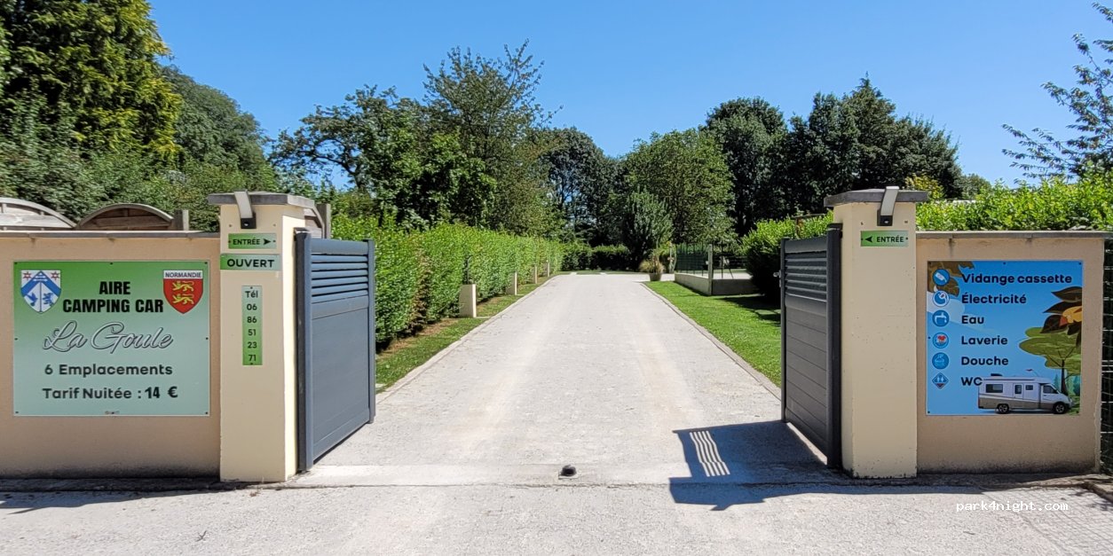 Bonjour amis camping cariste aire de camping car privé la GOULE 6 emplacements avec tout le confort (douche toilette et de quoi faire la vaisselle)dans un état irréprochable vidange eaux grises et eaux noire très bien conçu patrick et catherine vous reçoivent à bras ouverts accueil très chaleureux et sympathique et en plus vous avez la possibilité d'avoir des vienoiseries merci a vous deux