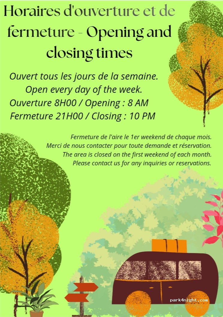 J'y suis passé dans la nuit du 27 au 28.11.23. Très bon accueil, et très belle aire. Merci au propriétaire. A recommander sans hésitation.