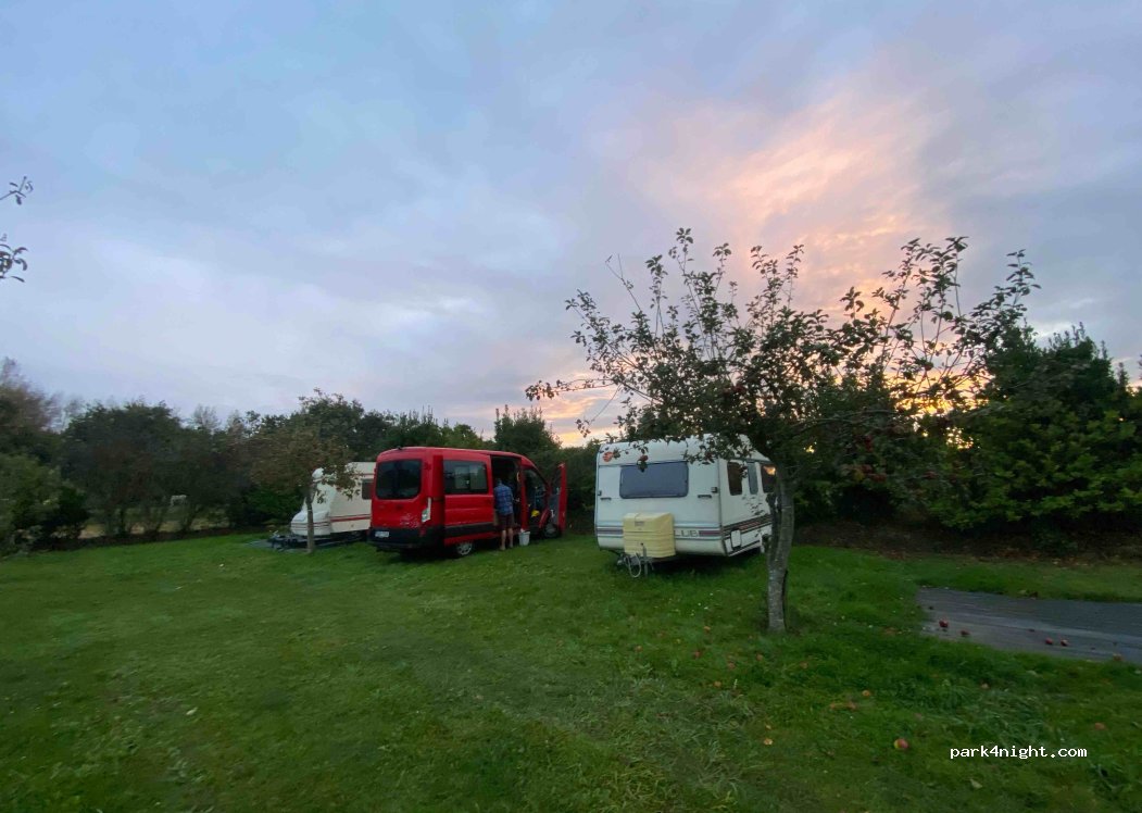 Lieu au calme, entre les pommiers et sur terrain plat. Douche, toilettes, eau et électricité possibles. Propriétaires très sympathiques et accueillants. Ne pas venir trop tard, les places sont chères !