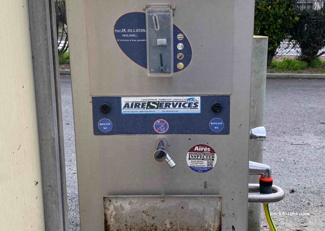 A le mérite d'exister, près d'une route très circulante, pratique pour faire les courses et d'aller au port. pour une nuit c'est bien mais pas plus. l'eau à ce jour fonctionnait, mais voilà faut mettre un jeton ce n'est pas gratuit